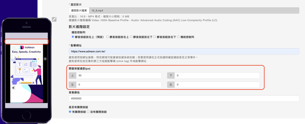 ⚠️ 在「影片格式」顯示為符合 AdNeon 影片規範的情況下,我們無法保證投遞後絕對正常,請以真實投遞結果為主。